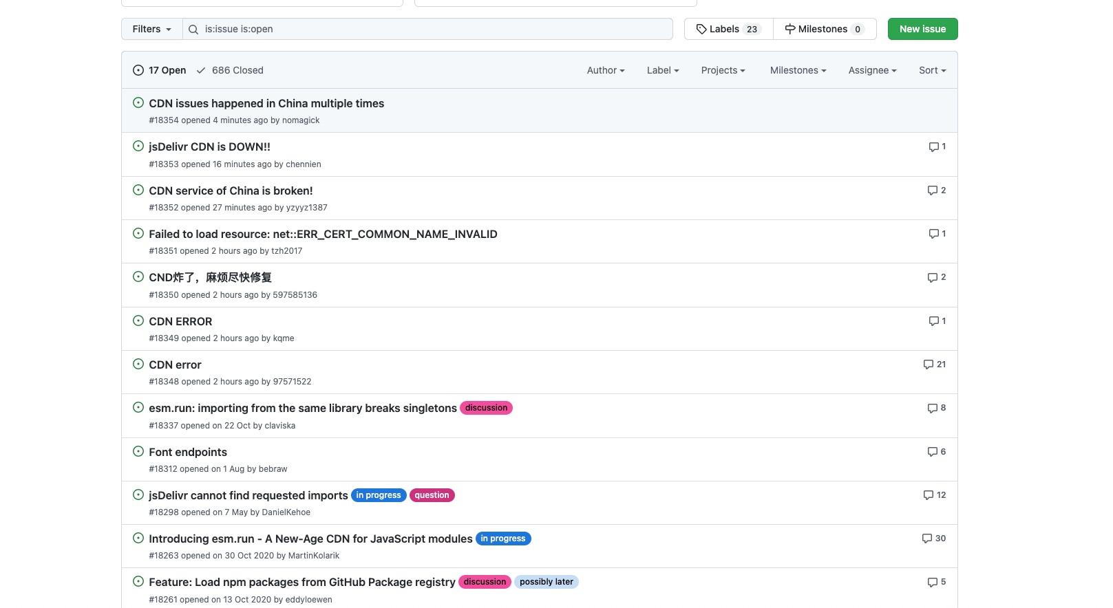 jsDelivr中国的CDN出现了问题,而freewind的cdn正好采有的是jsDelivr,麻了,正在等官方修复,我自已这边是临时将cdn迁移到了其它地方暂保证站点大部分功能可用